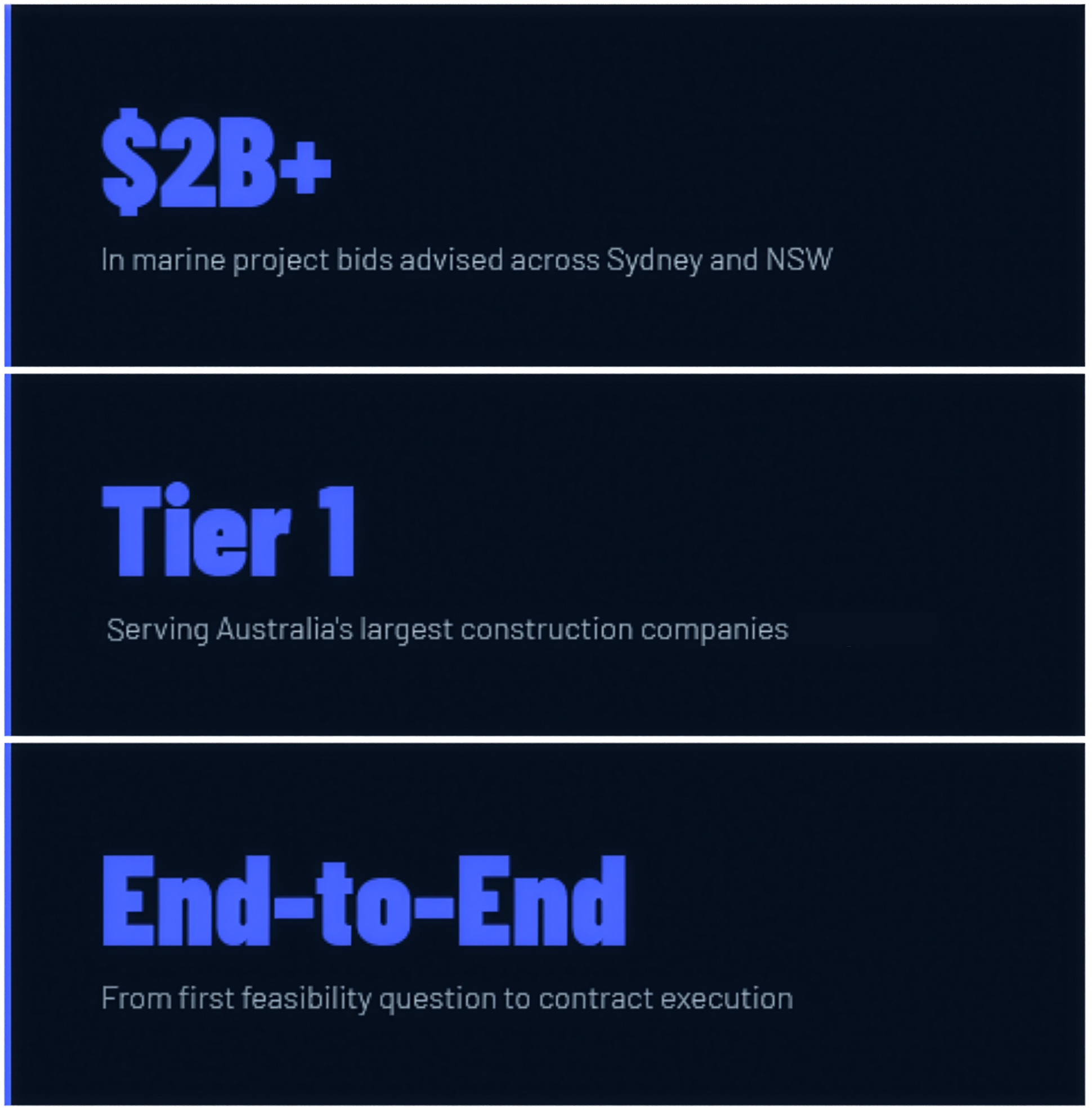 Southern Marine Advisory gives tier-1 construction companies the specialist knowledge and commercial strategy they need to confidently bid on — and win — marine construction work in Sydney.